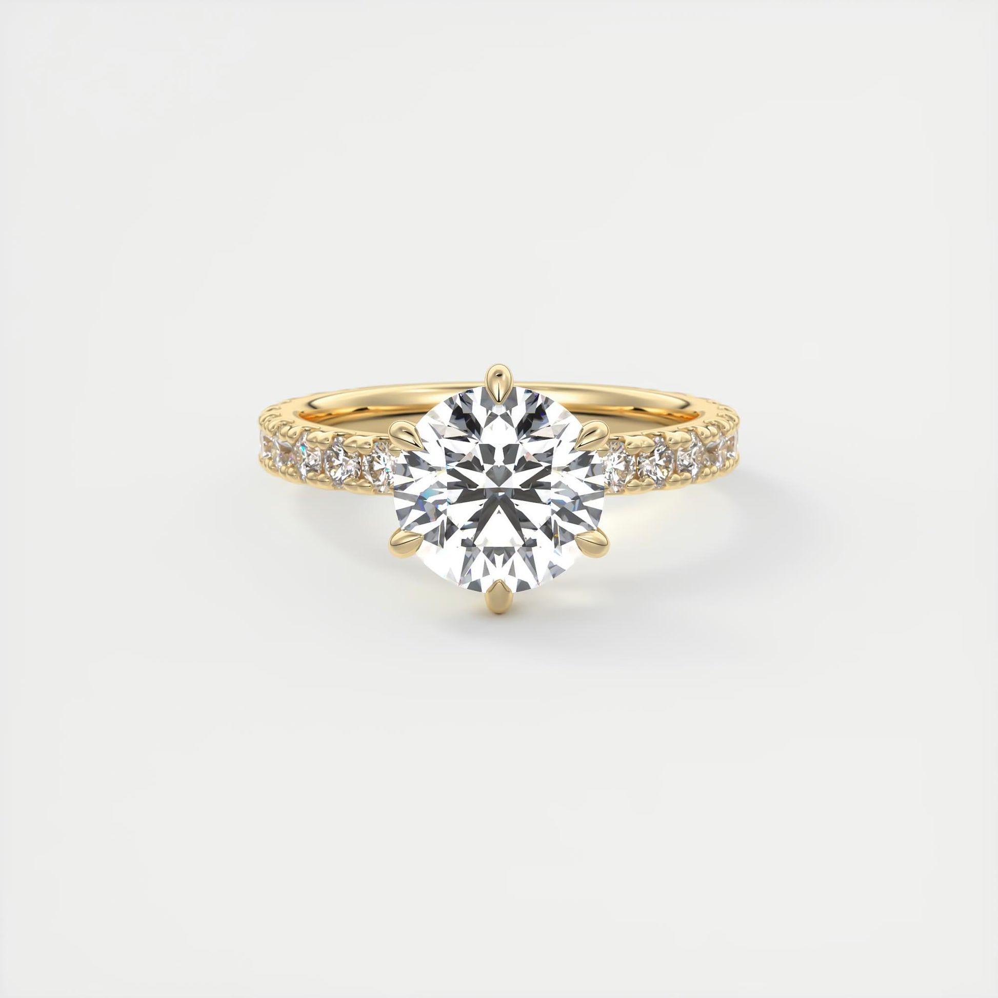 Pop the question with this stunning lab-grown diamond engagement ring. Expertly crafted with a brilliant round-cut diamond in a classic six-prong setting on a sleek band featuring bold pavé-style side stones, it symbolizes your love with unmatched clarity (VS1 or better) and colorless diamond (minimum D, E or F grade). Sustainable and timeless, this ring is the perfect start to your forever. Handcrafted in the USA.